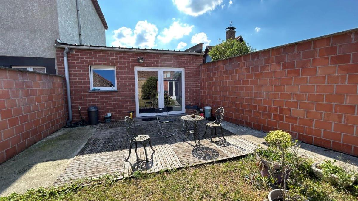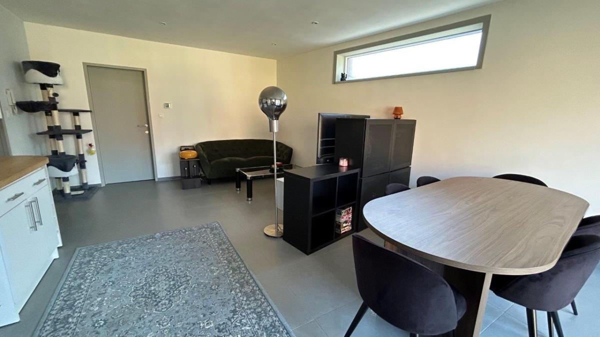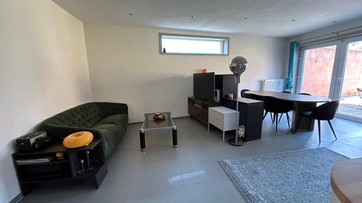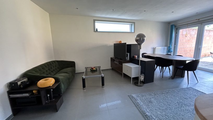 Bel appartement situé au rez-de-chaussée comprenant un hall d’entrée, cuisine équipée ouverte sur le living, 1 chambre, salle de douche avec WC, terrasse, jardin et remise.